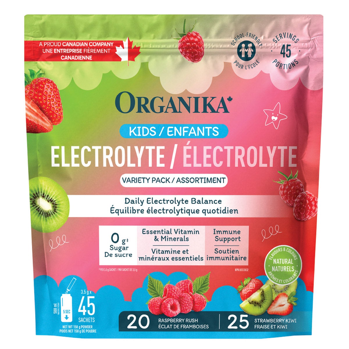 Organika Kids Electrolytes Variety Pack, 45 x 3.5 g 20 x Raspberry Rush & 25 x Strawberry KiwiPacked with essential vitamins and minerals like calcium, magnesium, and vitamin C includes prebiotic fibre to support gut health contains 0 grams of sugar but lots of flavor kid-friendly and easy to enjoy dailyOrganika Kids Electrolytes Variety Pack, 45 x 3.5 gBuy now