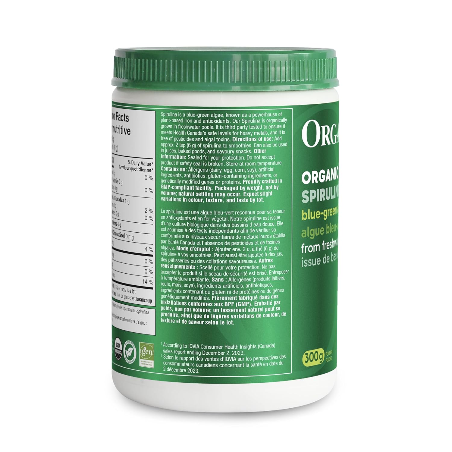 Organika Organic Spirulina Powder, 3 Bottles of 300 g